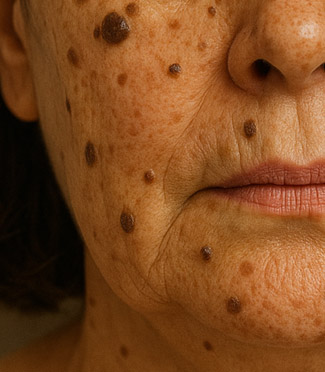 노화나 자외선 노출로 인한 갈색 또는 흑색의 각질성 병변